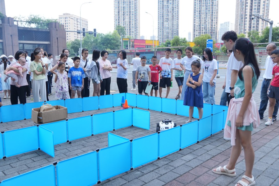 实践团志愿者通过现场互动和实操讲解的方式,让孩子们与无人驾驶车模型、机器狗等科学产品来了一次“亲密接触”。在无人驾驶车体验环节中,志愿者引导孩子们主动参与设置终点、制造障碍、遥控驾驶等环节。无人驾驶车自动规划最佳路线、智能避障、视觉精准识别、远程遥控等功能让孩子们惊叹不已。在机器狗的体验环节中,志愿者讲解了机器狗行走、后空翻、蹲下等操作,鼓励孩子们操作机器狗。在热情高涨的氛围中孩子们不仅吸取科学知识、还探索科学奥妙、感悟科学魅力。