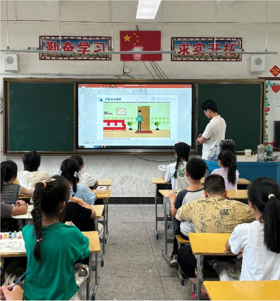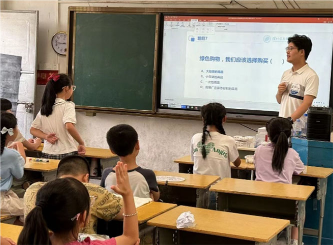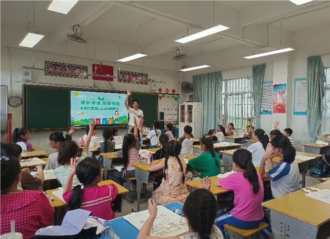 在环保主题课堂中,小朋友们了解了为什么要保护环境、常见的环境危害有哪些、生活中有什么环保措施以及如何做一名环保小卫士等等知识。实践团队现场组织环保知识有奖竞答活动,用寓教于乐的方式让孩子们掌握了实用的环保知识,给孩子们埋下“守护绿色家园、环保从我做起”的种子。