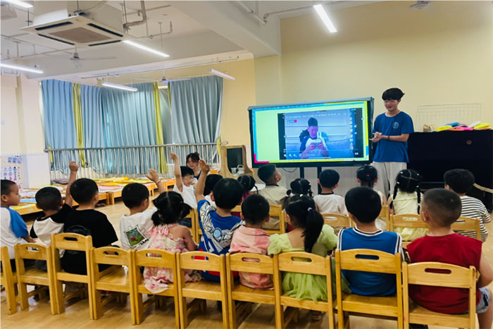 实践团成员吴俊宏为小朋友们讲解《筑反诈防线,不做电诈工具人》课程。课程以电信诈骗为切入点,讲述了日常生活中小朋友们可能会面对的电信诈骗情形,充分调动了小朋友们的积极性。并且告知了小朋友们如何筑牢反电信诈骗防线,向小朋友们强调了“两卡”、“三码”的重要性。提问时,小朋友们都举起高高的小手,踊跃回答问题,现场气氛热烈。