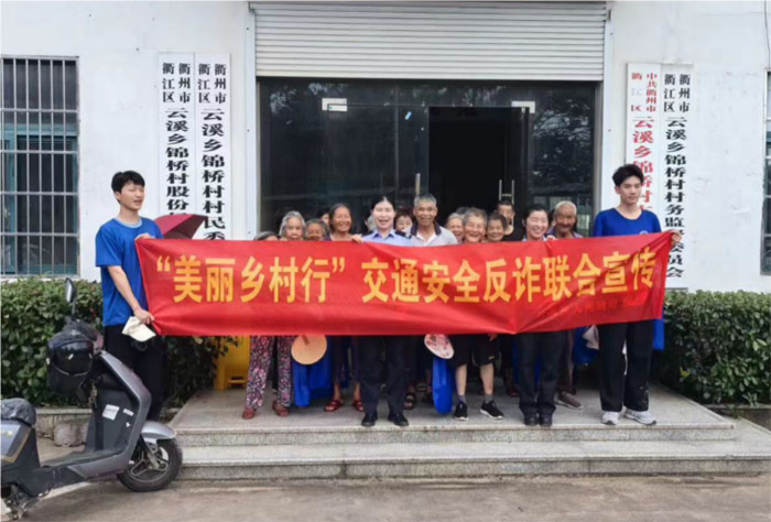 人人有知,衢城无诈。为培养并深化基层民众反诈意识,以助力衢城反诈目标切实实现,7月17日,浙江财经大学金融学院赴衢州“‘金’钟防诈守正道,‘融’心反邪护万家”实践服务团联合当地公安部门走进衢州市衢江区锦桥村,以走访的形式进行了反诈宣传。