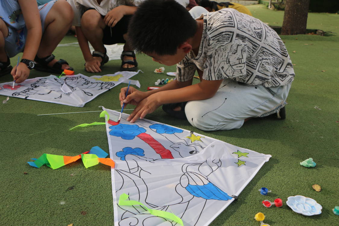 有的孩子细心地为风筝涂上了五彩斑斓的彩虹,每一道色彩都像是他们心中对美好生活的向往与期待;有的孩子则选择了卡通人物作为主题,用稚嫩却充满灵气的笔触,为风筝赋予了生动的故事与情感,展现了他们纯真无邪的内心世界。整个活动现场瞬间变成了一个色彩斑斓的童话世界,每一声欢笑、每一笔色彩,都是孩子们对未来生活的美好憧憬。