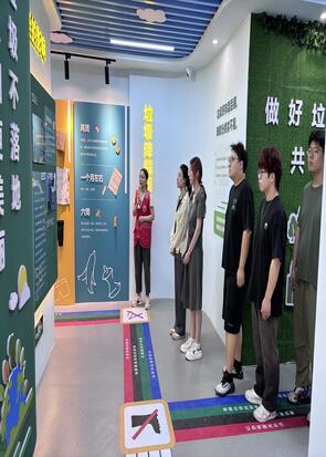 队员们在淮阴区城管局工作人员的带领下,通过回顾垃圾分类的历史演变、垃圾危机的出现及应对策略等,实践队员们沉浸式走进垃圾的世界,了解生活垃圾的“前世今生”,庞大的垃圾产量令队员们意识到垃圾分类的重要性和紧迫性。进入数字展区,屏幕上实时变化的数字和动态图,直观的展示出淮安市垃圾分类的显著成果和变化趋势,队员们纷纷表示,作为从家乡走出去的大学生,更应该好好学习垃圾分类的相关知识,为建设美丽淮安更好的贡献自己的力量。