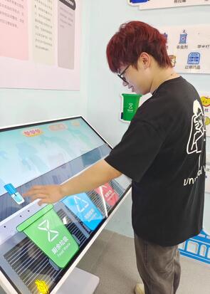 讲解结束后,队员们体验垃圾分类小游戏,及时巩固垃圾分类知识;在AI示范清洁小屋,队员们体验由AI机器人“小纳”指导垃圾分类投放,感受科技给生活带来的便利。宣教馆内生动的讲解、知识展示、互动体验等服务,主打科学性、知识性与趣味性相结合,队员们收获颇丰。