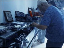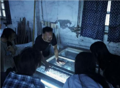 倘若以上让我们团队看见的是王老先生那份心怀天下的气度,那么在与他接触的过程中,我们更是因其平易近人“接地气”的姿态而感动。王老先生说,他愿意接待每一个来访问的人,哪怕我们是学生,哪怕我们不购买任何成品,他也愿意为我们提供任何我们需要的东西,愿意耐心地为我们介绍两个小时左右的蓝印花布,在王老的身上,让我们看见的是匠人身上的一种大爱,一种无私,一种传承的责任与使命感。