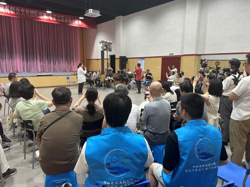 7月24日,调研团队赴扬州市江都区文化馆,参加扬剧文化交流活动,活动现场邀请到了中央音乐学院博士生导师二胡演奏者严洁敏教授。戏韵悠悠,丝弦悦耳,扬剧演员们以《软平》、《南调》为基本腔调,现场不断打磨唱段。扬剧团负责人还为团队成员现场解读了扬剧渊源、基本知识及表演的四功五法“唱、念、做、打、手、眼、身、法、步”,并让团队成员体验了小生、花旦等角色的步法和水袖。“一场完美的演出,不仅考验演员的基本唱功,更考验乐团与演员之间的配合。江都作为中国扬剧之乡,一直着力传统剧目的打磨提升和现代扬剧的创新编排。” 扬剧团负责人戚女士这样说道。