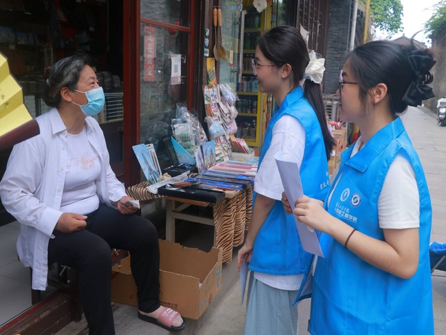 图为“扬州韵·运河情”文化调研团团队成员深入社区调研图片。大学生新闻通讯员吴昊摄。