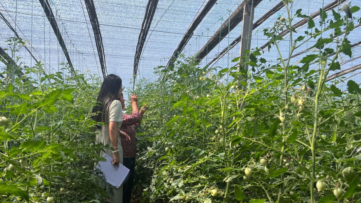 图为实践队员在大棚内与农户交流。中国青年网通讯员 周冰茹 摄