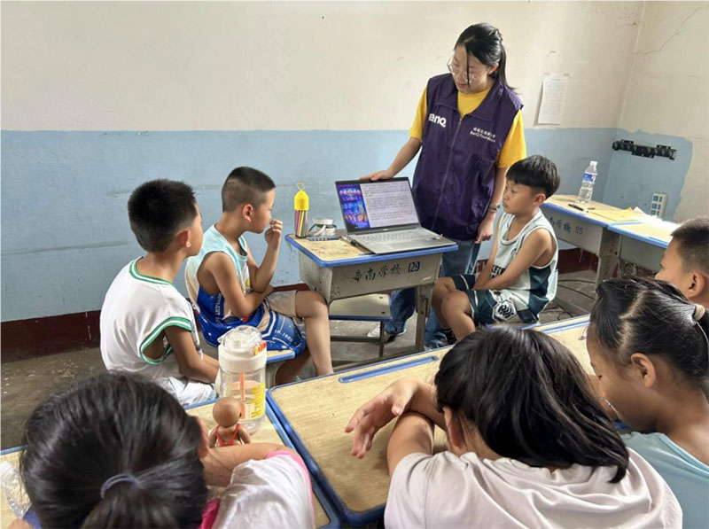 图为团队成员李玉婷为孩子们讲解《头脑特工队》的内容。图为通讯员陈炳睿摄。