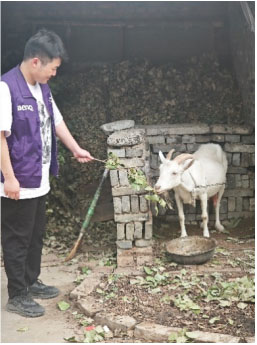 图为调研组成员体验喂🐏。图为调研组成员摄。