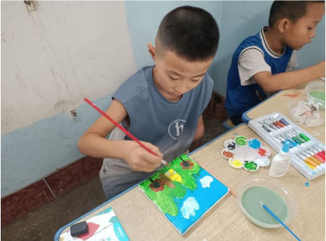图为小朋友在制作纸浆画。通讯员刘欣茹摄。