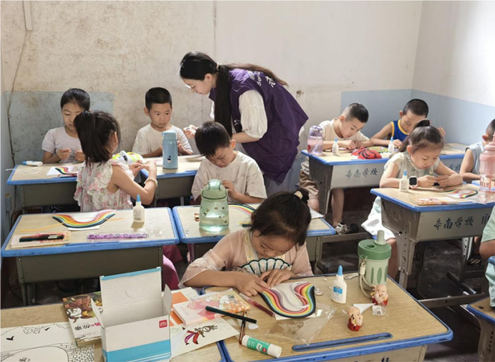 “孩子们对这节课程都很感兴趣,认真地学习着每一个步骤。”支教志愿者陈炳睿说,“看着他们专注地制作,渐渐地创作出各种漂亮的图案,内心也感到很欣慰。”