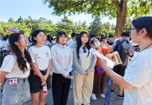 一场好的宣传活动是双向的,在积极认真了解这处世界非遗的同时,团队也在完成对自身、学校与城市的一场介绍。团队深知进行宣讲时流畅完整的叙述、积极活泼的精神面貌无疑才是学校与城市的最好名片,在团队自我介绍完成后进行了学校东北林业大学学校概况与学科建设、校史校情的介绍,吸引了不少游客一同聆听,结束后不约而同响起掌声,游客们纷纷表示感触良深,有所收获,其中不乏对东北林业大学产生兴趣并向团队成员们咨询了解的中小学生及其家长。
