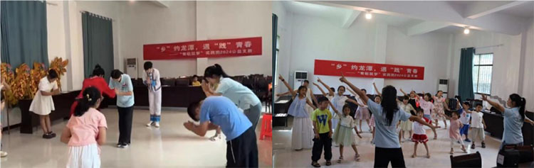 土家摆手舞是土家族最主要的标志性文化形态,2008年被列入第一批国家级非物质文化遗产拓展项目名录,男女老少,人人会跳,承载着土家人民的信仰和历史,体现了土家人民勤劳、坚韧、质朴的品质。穿上土家族传统服饰,聆听《木叶情歌》的旋律,实践团成员们与孩子们一起随着音乐摆动双手,甩同边手、走同边脚,能歌善舞的土家族儿童们自信大方地展示民族舞蹈的独特魅力,实践团成员深刻感受到中华民族优秀传统文化所体现的时代意义。