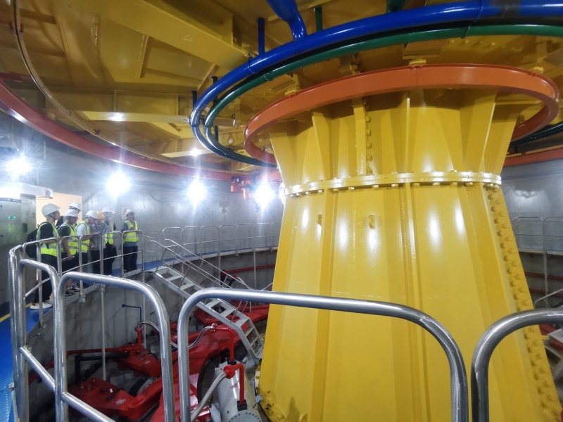 图为实践团在工作人员带领下参观水轮机