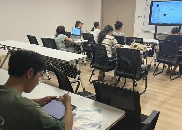 团队成员在探访过程中体验到了自己学生时代未曾体验过的课程。在书法课程中,他们感受到了书法艺术的魅力,以及小班化、年轻化、专业化的教学特点。老师针对每个学员的书写特点进行个性化指导,让学员们在墨香中领略传统文化的韵味。在数字绘画课程中,青研团成员们惊叹于现代科技为艺术创作带来的无限可能。数字绘画不仅打破了传统绘画的材质限制,还提供了更多元化的创作手段和更广阔的创作空间。通过调整色彩、线条和图层等参数,成员们轻松实现了许多传统绘画中难以达到的效果。
