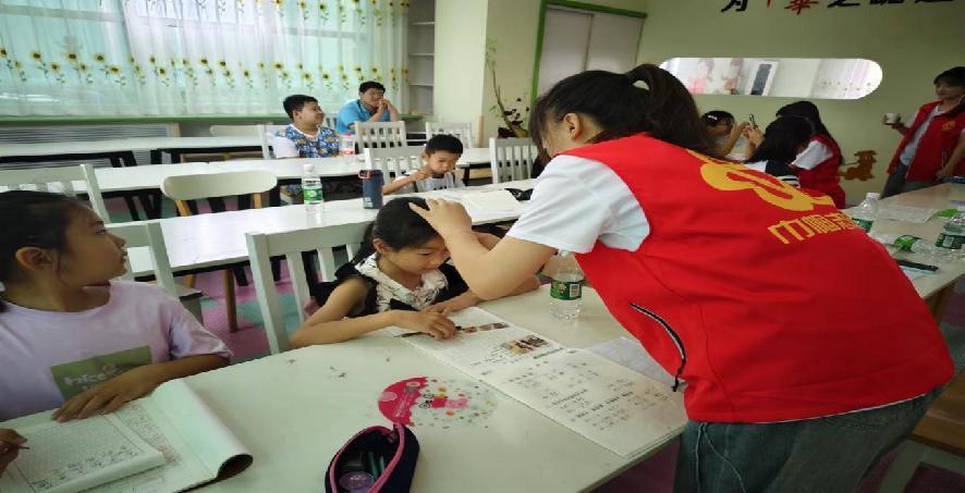 图为村里集镇筑梦人志愿团队单独辅导孩子们。通讯员 何明飞 摄
