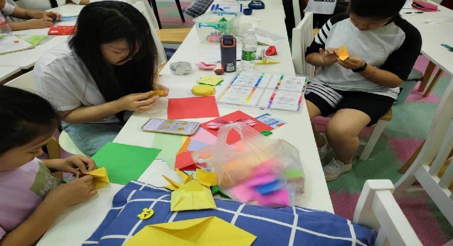 图为筑梦人志愿团队队员带领孩子们剪纸做手工。通讯员 杨瑞雪 摄