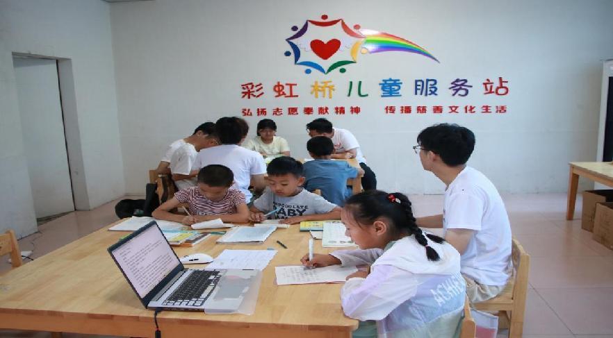 图为村里集镇筑梦人志愿团队支教辅导孩子们。辅导员 管恩雨 供图