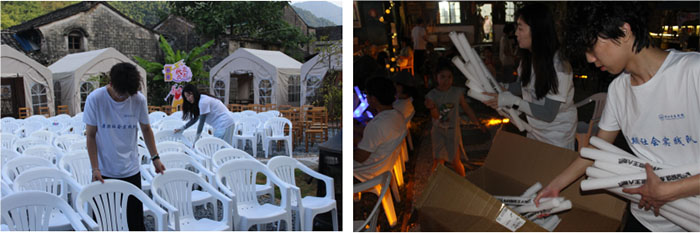 活动当天,南溪小院被装扮得格外喜庆,彩旗飘扬,歌声绕梁,吸引了来自四面八方的观众共计500余人次,共同见证了一场视听盛宴。队员们积极参与到活动的筹备和组织工作中,从场地布置到观众引导,从银光棒的发放到现场秩序的维护,他们用实际行动诠释了青年学子的责任与担当,为深甽镇的乡村振兴贡献了自己的力量。