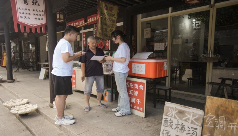 图 1团队成员在凤凰镇恬庄街道实地考察