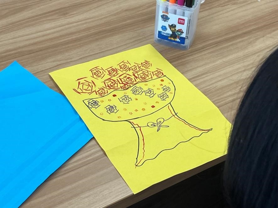 为帮助小朋友们更好地理解红十字会的百年历程,实践团成员通过故事讲述、情景模拟和角色扮演等互动模式,帮助小朋友们切身领悟红十字精神的真谛。小朋友们在理论学习和游戏互动的过程中也有很多心声想要表达。实践团成员带领小朋友们进入“创意表达”环节。小朋友们拿起画笔、纸张,用童真的语言和图画表达对榜样人物和红十字精神的敬仰。小朋友们的作品充满了想象力和创造力,每一幅画都充满了勃勃生机,充满了对生命的热爱和对未来的美好期待。