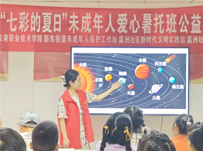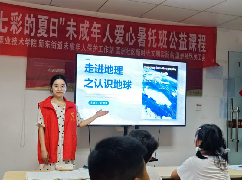 随着暑假的到来,瀛洲社区公益爱心暑托班如约而至,旨在为社区内的孩子们提供一个安全、充实、有趣的假期学习环境。江苏师范大学青年学子怀揣着对教师职业崇高敬意和对志愿服务无限热爱,主动请缨,成为了暑托班中的地理老师。