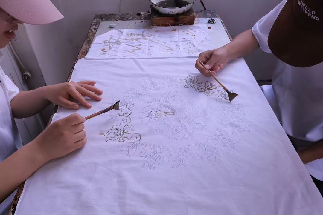 进工坊学技艺,躬于桌几实践蜡染绘篇章
