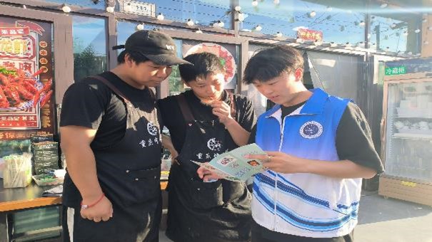 随着科技的飞速发展,诈骗手段日益翻新,从传统的电话诈骗、短信诈骗,到如今的网络诈骗、冒充公检法诈骗等,诈骗分子无孔不入,严重威胁着人民群众的财产安全。因此,加强反诈宣传,提高公众警惕性,已成为当前社会治理的一项重要任务。塔里木大学化学化工学院三下乡反诈宣讲团在2024年7月8日12名普法反诈志愿者在阿拉尔市幸福路街道大学北路的胡杨河商业街展开了一场以“青春同心,反诈同行”为主题的三下乡反诈活动。此次行动旨在通过一系列丰富多彩的教育活动和实践举措,为阿拉尔胡杨河商业街地区的防诈宣传筑起了一道坚实的安全防线,让他们的生活更加幸福。