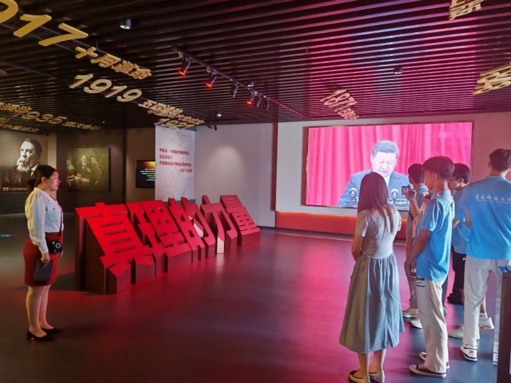 同学们在一幅幅展板、一件件实物前驻足凝视,深刻领悟马克思主义的科学性和真理性。从《共产党宣言》的诞生到中国共产党将马克思主义基本原理与中国实际相结合,创造了一系列伟大成就,同学们对马克思主义的发展脉络有了更清晰的认识。