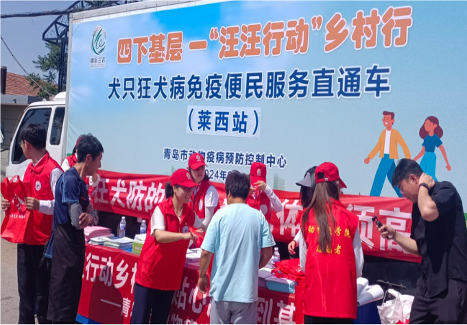 实践团成员积极联合青岛市动物疫病预防控制中心、莱西市农业农村局姜山镇动站,创新服务模式,开展“汪汪行动”乡村行——狂犬病预防接种知识普及志愿服务活动,犬只狂犬病免疫便民服务直通车驶入农村大集,采取设点免疫和流动免疫服务的方式,对泽口村饲养犬只进行了细致的调查摸底,登记造册,并为村民家犬免费注射狂犬病疫苗,成功搭建起狂犬病免疫的移动服务站。同时,实践团成员还积极向村民宣传布病、狂犬病等人兽共患病防控的政策法规、疫病防治、个人防护、应急处置、文明养犬等知识,累计发放宣传资料500余份,接受村民咨询80余人次,免疫犬只33只,直接和间接受益人数超3000人。实践团依托专业知识,提供免疫服务,显著提高了该地区犬只的免疫覆盖率,增强了公众卫生安全意识,构筑起人畜健康安全防线。