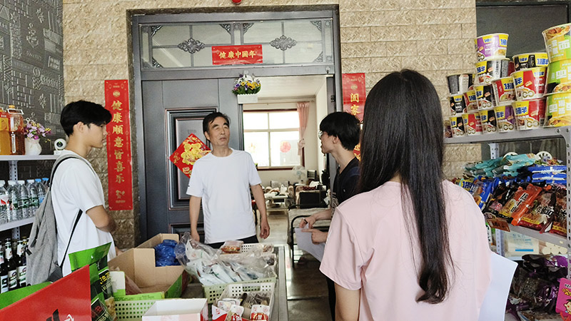 实践团提前大量查阅胡家庄村相关资料,整理出20份调研问卷,进一步向当地村民了解本村乡村振兴的实际成果,一位大叔表示:“以前村民都外出打工,一年到头也挣不了多少钱。现如今村上的企业多了,有工资、有分红,日子比以前好多了。”实践团走在葡萄架下,向当地村民了解到本村土地面积近3200亩,其中葡萄种植面积达1295亩。该村以葡萄种植业为主,经过多年发展,已形成一定的规模的产业链,为深度进行三产融合,推动农产品加工业优化升级,推动农村流通高质量发展,奠定了坚实基础。而小卖部老板提出随着产业发展进步,风险提升,村民工作热情下降,粘性也会降低,希望企业能进一步做好村民收入保障。实践团成员们也更深入了解到产业发展下村民的不易。
