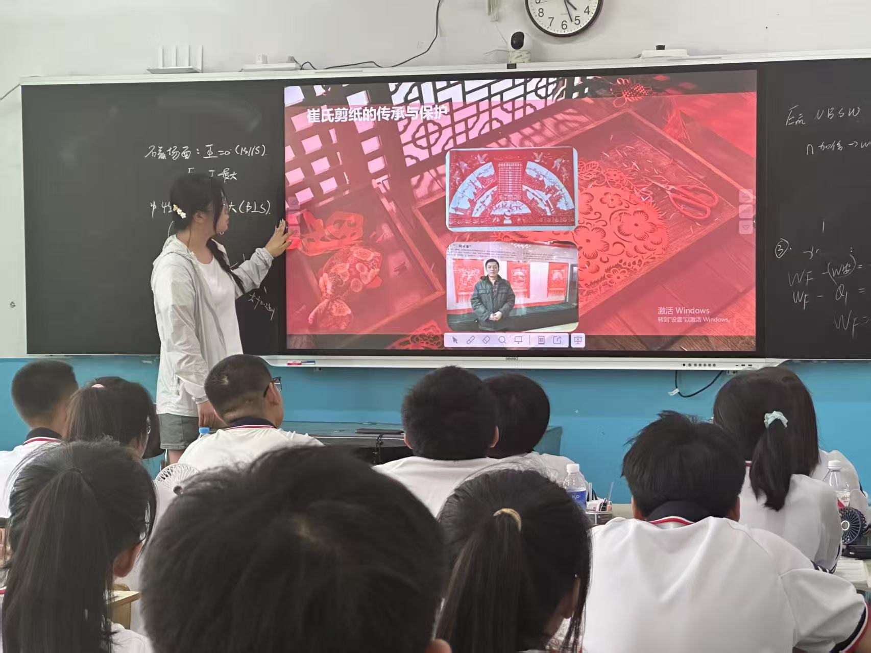 2024年7月12日带着在戚玉恒老师那里学到的知识和对剪纸艺术的新感悟,社会实践团来到了学校。在教室里,成员们精心准备了一场生动有趣的非遗剪纸宣传活动。他们首先通过PPT向同学们展示了在戚玉恒老师工作室拍摄的各种精美剪纸作品,以及剪纸艺术的历史文化背景和传承现状,同学们被这些色彩鲜艳、造型各异的剪纸作品深深吸引,眼神中充满了好奇和向往。