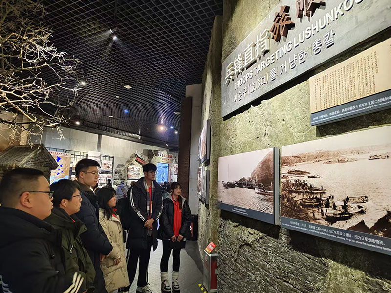 乘船进入刘公岛后,在当地工作人员指引下,实践服务团成员们首先前往中国甲午战争博物馆了解甲午战争的背景,过程,后果和影响。通过一段段醒目的文字,一篇篇泛黄的书页,一件件珍贵的文物,一座座感人的雕塑,实践服务团成员们深刻体会到当时海军官兵们不屈不挠、英勇战斗、舍生忘死的精神。实践服务团成员们认真聆听电子导游的讲解,积极讨论思考,顺利完成了对中国甲午战争博物馆的参观学习。
