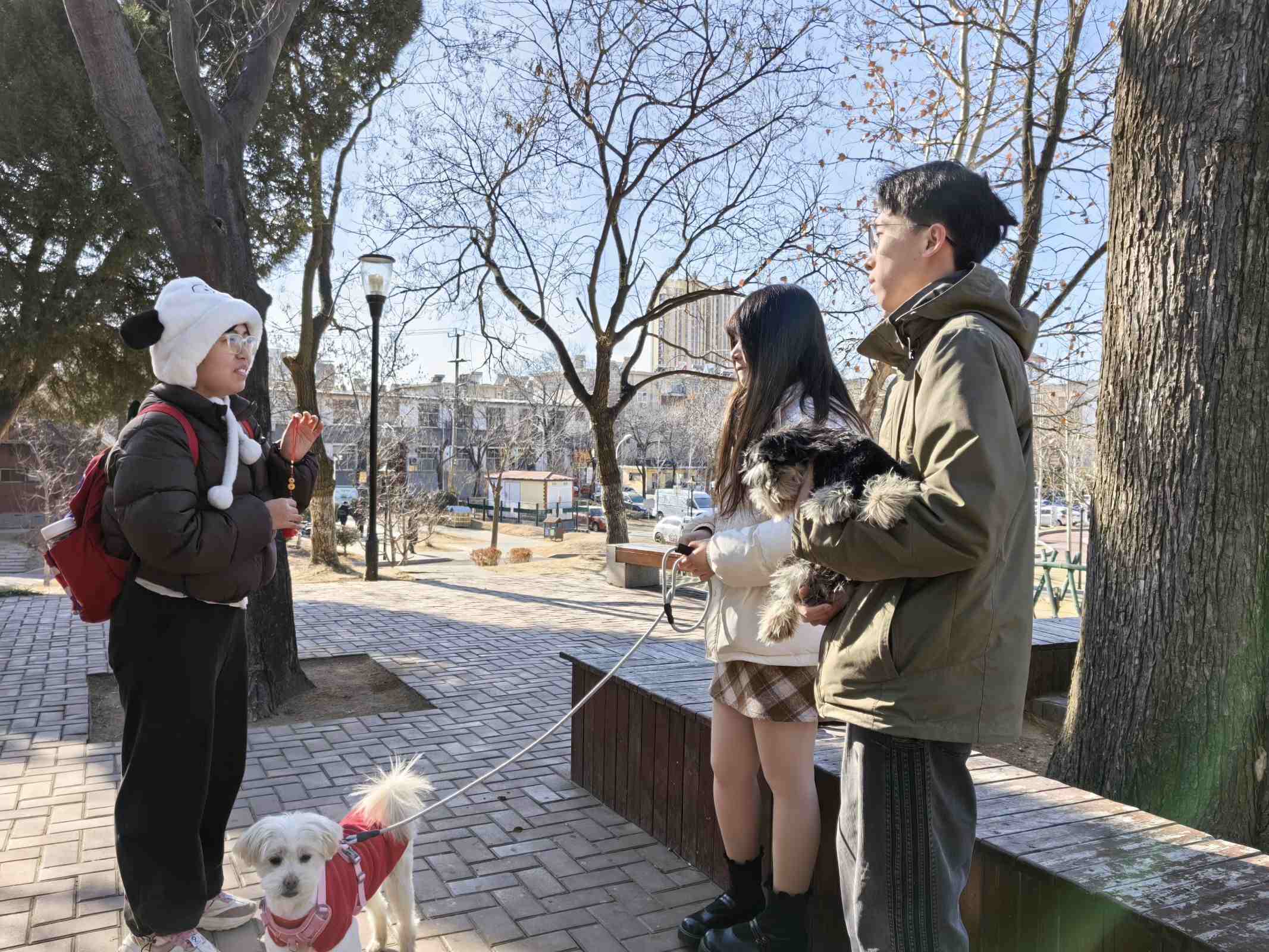 图六 小组成员向路人介绍盘扣