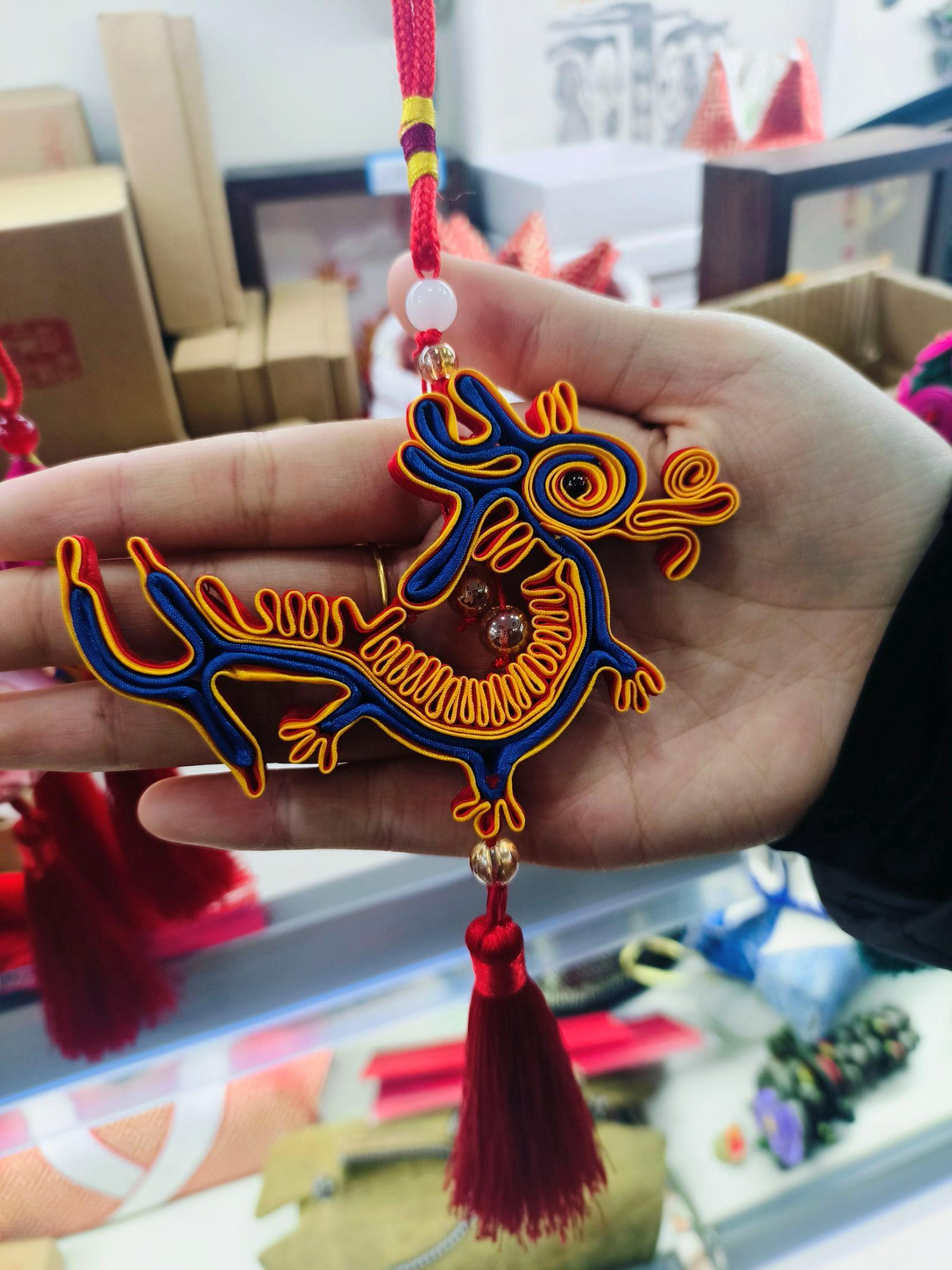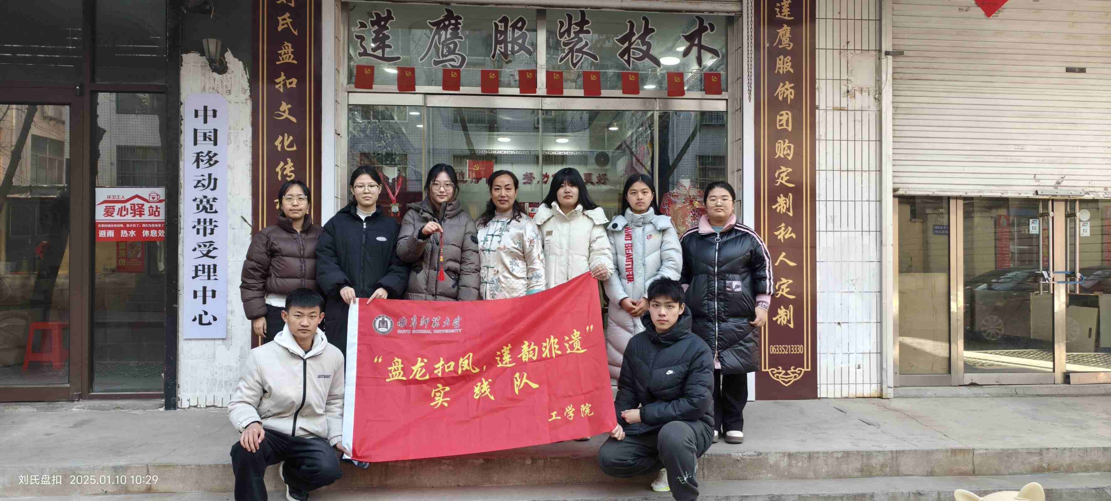 为了传承与创新盘扣这一凝聚着中华民族智慧与精湛技艺的传统工艺,1月17日上午10:00,“盘龙扣凤,莲韵非遗”实践队到访了山东省日照市五莲县,深入体验并探索盘扣文化的魅力及其在当代的传承与发展。实践团队首先来到五莲县盘扣非遗传承中心,这里珍藏着众多精美的盘扣作品。店内,一幅幅盘扣艺术品令人叹为观止,尤其是以甲骨文为型的十二生肖盘扣,更是将传统工艺与现代审美完美融合。