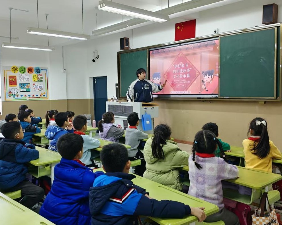 2025年1月,福建农林大学农学院“稻草人”义务支教志愿服务实践队来到福州仓山淮安实验小学,这支由研究生组成的队伍在留校科研实践过程中,将学术热情与社会责任相结合,深入周边中小学校园,开展了一场以“讲好春节的非遗故事”为主题的文化传承实践活动。