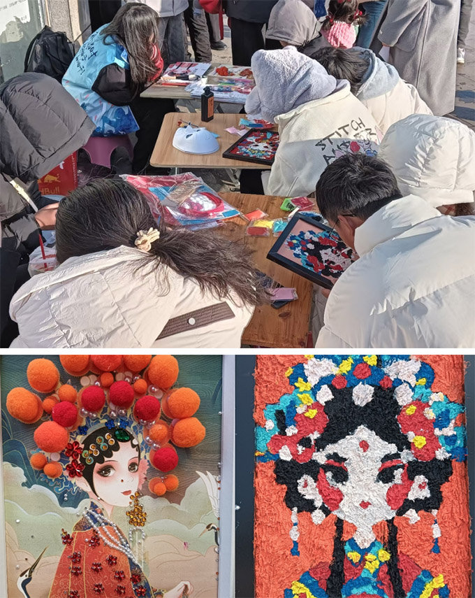 在河南省驻马店市正阳县的文化广场上,一场别开生面的戏曲手工艺品制作活动如火如荼地展开。实践团成员李佳佳携手民众,共同动手制作戏曲脸谱、纸质戏曲头饰等手工艺品。在制作过程中,成员们细致入微地介绍戏曲元素在手工艺品中的巧妙运用,不仅锻炼了大家的动手能力,更让大家深刻领略到戏曲文化的美学魅力,现场气氛热烈非凡。
