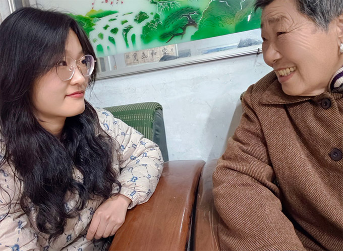 访谈环节中,在团圆饭上,在电视机前,在社区门口,成员们走近老人,认真倾听老人的真实诉求,深入了解家中老人和社区老人的健康状态、消费观念及需求期望。对于一些行动不便或视力不佳的老年人,成员们还提供了读题和协助填写的服务。