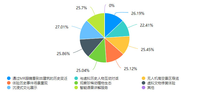 在新技术体验方面,游客们展现出了极高的热情和期待。通过MR眼镜观看古建筑的历史变迁、参与沉浸式文化展示、享受智能语音讲解服务等新兴体验方式,受到了广大游客的热烈欢迎。这些新技术不仅提升了游客的游览体验,更为文旅融合提供了全新的可能。它们打破了传统旅游的界限,让游客在享受美景的同时,也能深入了解背后的历史文化,实现了旅游与文化的深度融合。