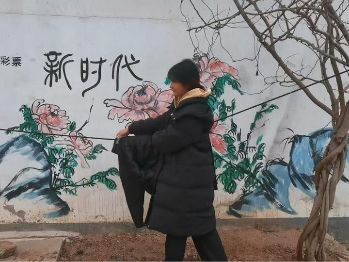 图为实践团成员晾晒衣物