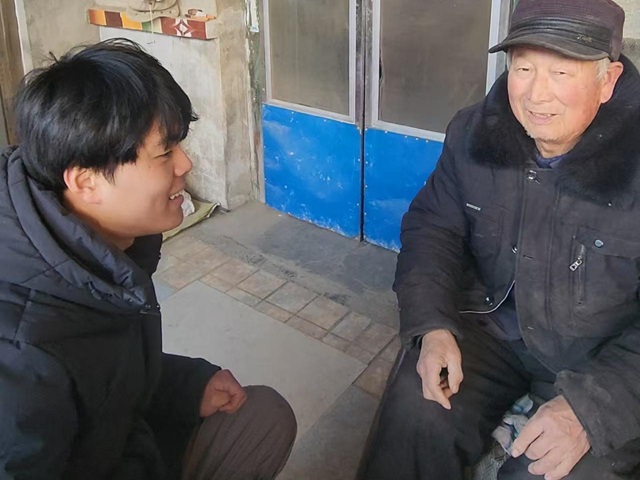 图为实践团成员倾听老人心声