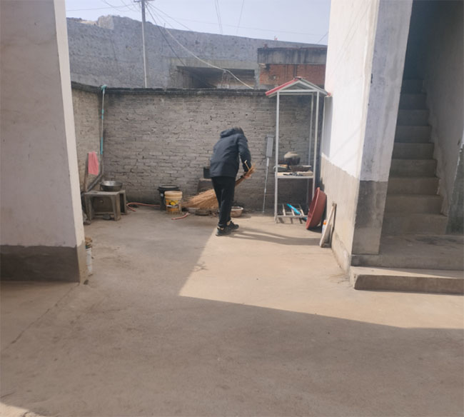 1月20日,李青杰受村里委托,帮助五家孤寡老人打扫院子。老人虽行动不便,但注重卫生。打扫时,他与老人愉快交谈,了解过去艰苦岁月,深感00后生活的幸福。