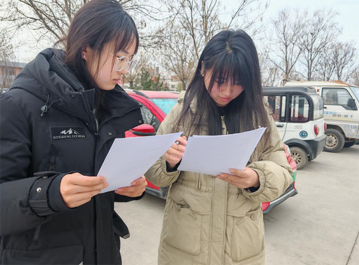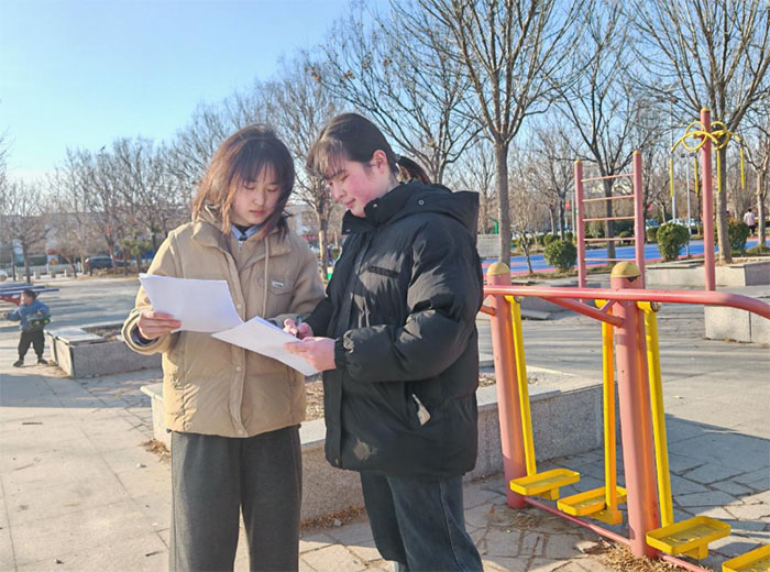 图为杨冰溪在线下发放问卷。杨冰溪 摄