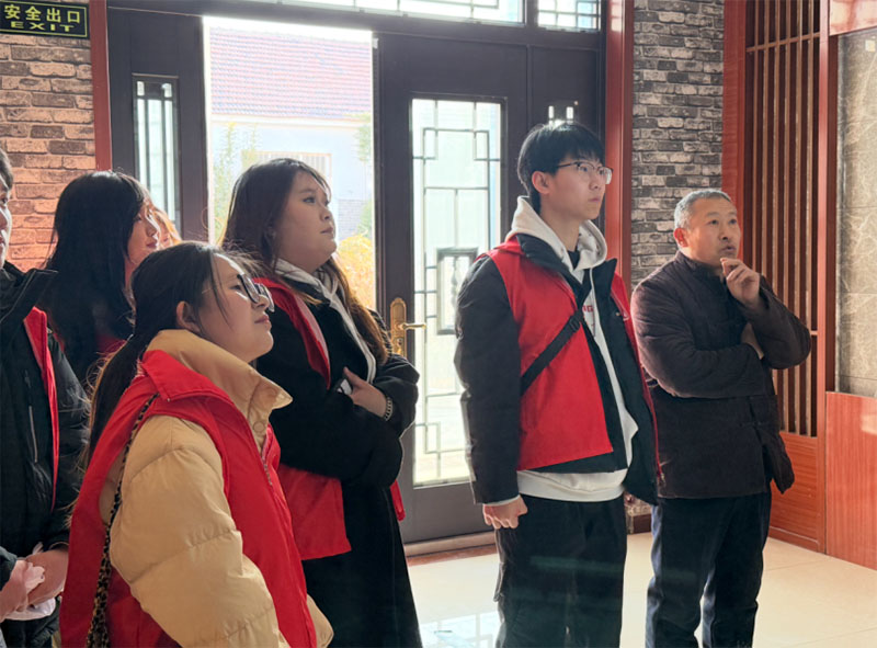 图为赵师傅为胶州实践队介绍黑陶博物馆。何裕彤 供图