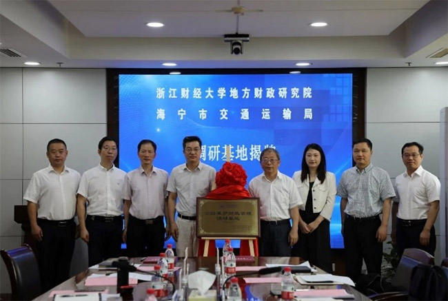 从纸面到实践的关键一跃,在海宁擦出创新火花。2024年7月19日,浙江财经大学地方财政研究院与海宁市交通运输局携手共建全国首个公路养护财政管理调研基地。这场"政产学研"的联姻,搭建了一条理论研究与政策实践双向贯通的高速通道。基地依托财政税务学院的专业优势,整合财政学、税收学、公共管理学等多学科资源,精准指出了团队在实践中出现的问题,及时纠正了研究误区,使实践成果在专家们的深入分析中焕发出更深厚的理论价值。作为基地的核心专家,高琳老师与王超老师充分发挥了“双师型”角色的优势,既为团队提供了前沿的理论指导,又结合自身丰富的实践经验,帮助团队在调研中少走弯路、多出成果。两位老师以深厚的学术积淀与敏锐的政策洞察力,为团队注入了源源不断的智慧动力。