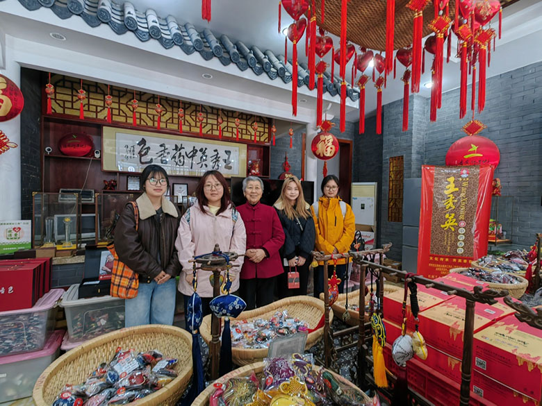 调研期间,团队还前往潘安湖拜访了国家级非遗香包传承人王秀英。香包工作室成员向团队详细介绍了香包的制作工艺和文化内涵。成员们认真观摩,积极提问,对非遗文化传承有了更深刻的认识。王秀英老人动情地说道:“香包不仅仅是一个手工艺品,它承载着我们的历史和文化,也寄托着人们对美好生活的期盼。”
