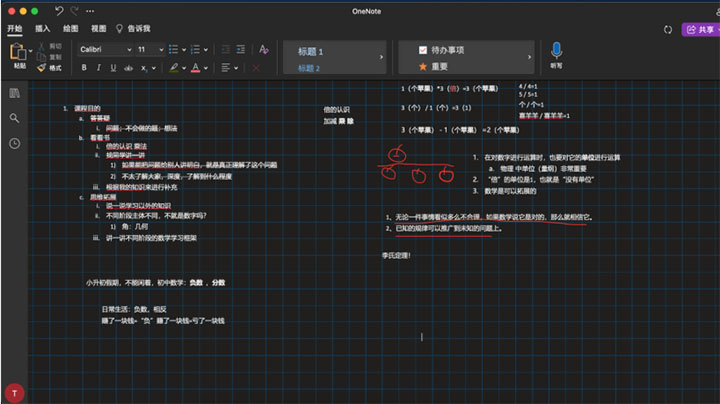 课程刚开始,负责讲解三年级数学课的李毅同学就被同学们的热情感染了。他明白,这次活动不是他单方面的讲授,而是身为一位大学生朋友,向小朋友们一起分享数学的魅力,体验数学的乐趣。于是,他决定放弃之前准备好的大纲,而是与同学们看起了书,聊起了天。一同翻阅教材时,如果遇到了有趣的问题,他会以自己的视角发表看法,并和同学们讨论。当我们查阅他留档的笔记时,发现充满风趣。“这是我们共同完成的笔记。”李毅同学如此介绍道。