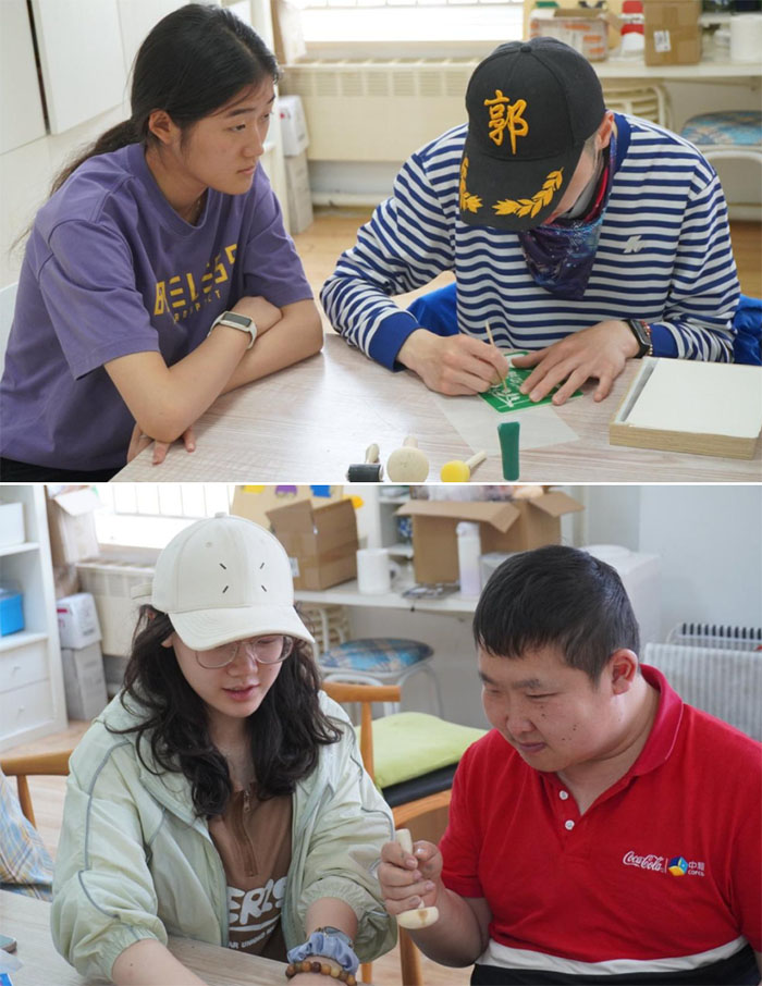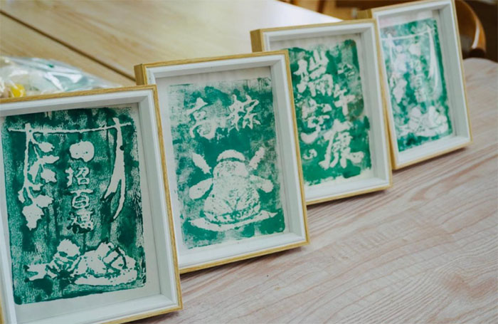 活动室里,墨香与颜料的气息交织,实践队员们化身耐心的“艺术助教”,一对一、手把手地陪伴在孩子们身边。当蘸满颜料的拓包轻轻按压在纸面,空白的画纸瞬间跃动起节日气息……每一幅拓印画都是独一无二的“星语”表达,饱含着孩子们对创作的投入,以及与队员之间那份悄然建立的信任与连接。