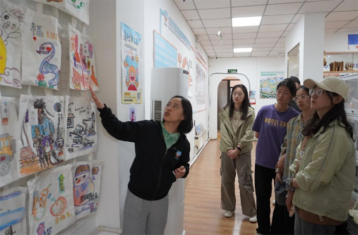 实践的意义不仅在于付出,更在于倾听与理解。活动的尾声,实践队员们有幸采访了爱纳服务中心的李老师。当被问及“为何选择这份工作?”时,老师眼中闪烁着坚定而温柔的光芒。她说,是孩子们纯净的世界和毫无保留的信任,让她看到了生命最本真的美好与坚韧。这份工作,是责任,更是馈赠,让她得以用专业和爱心,陪伴他们发掘潜能,融入社会。老师的分享深深触动了在场的每一位实践队员,让他们对特殊教育工作者肃然起敬,也对“奉献、友爱、互助、进步”的志愿精神有了更深刻的体悟。