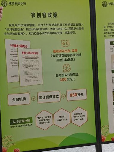 除外,在讲解员的讲解下,实践团了解到大同镇为吸引青年人才,做出了许多努力。《大同镇农创客创业创新扶持政策》的出台,为溪口村的发展注入了新的活力。政策聚焦于人才引育,提供“按月领薪创业”等创新内容,精准招引人才,为农创客团队提供了强有力的支持。博士生、硕士研究生、“双一流”本科生、新引进毕业五年内的青年人才,均可享受安家、租房等就业补贴,极大地激发了人才的创业热情,为村庄的长远发展奠定了坚实的人才基础。